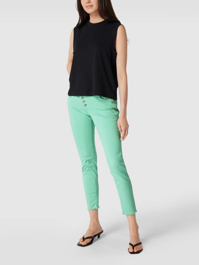 Die Hose von Buena Vista ist aus einem Baumwoll-Mix mit Stretch-Anteil gefertigt und im Slim Fit gehalten. Sie zeigt sich im unifarbenen Design mit Label-Details und ausgefransten Abschlüssen.
