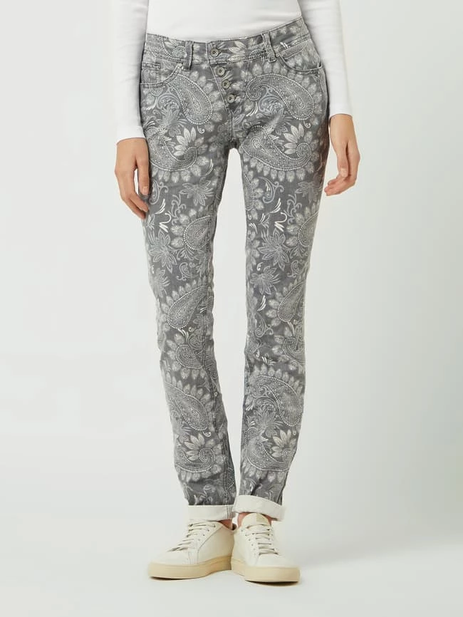 Die Jeans von Buena Vista ist aus einer Baumwollmischung mit Stretch-Anteil gefertigt. Sie kommt mit schmalem Bein, Paisley-Muster und Knopfleiste. Warum wir diese Passform mögen? Sie unterstreicht eine schlanke Silhouette.