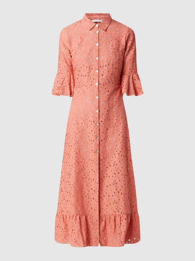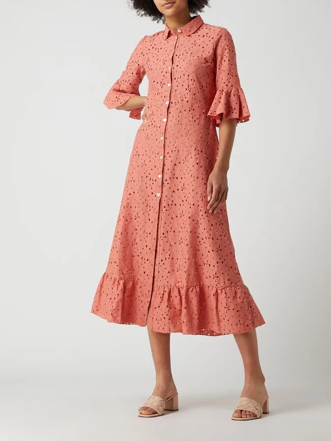 Das Kleid von Chiara Fiorini ist aus einer Materialmischung mit Baumwoll-Anteil gefertigt. Es kommt in taillierter Passform mit Umlegekragen, 1/2-Arm und Volantsaum.
