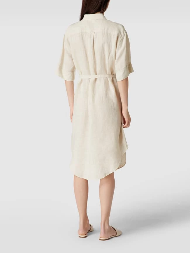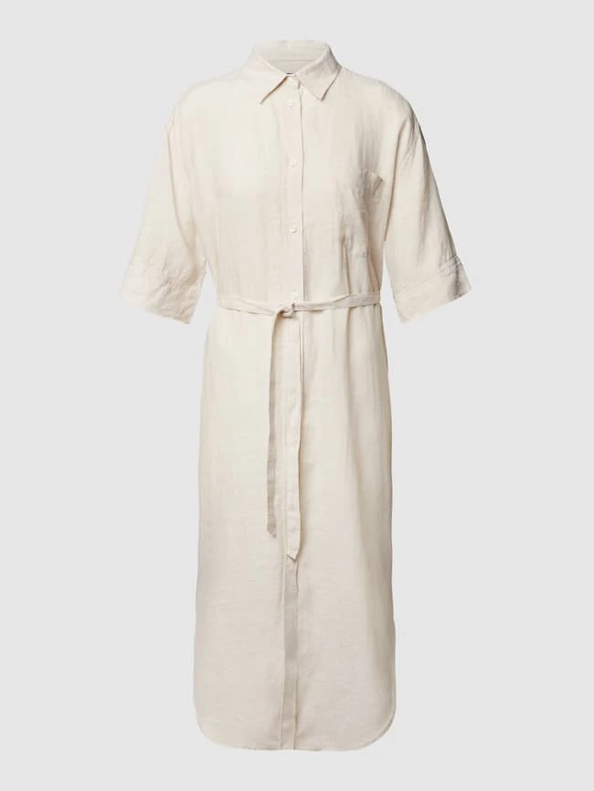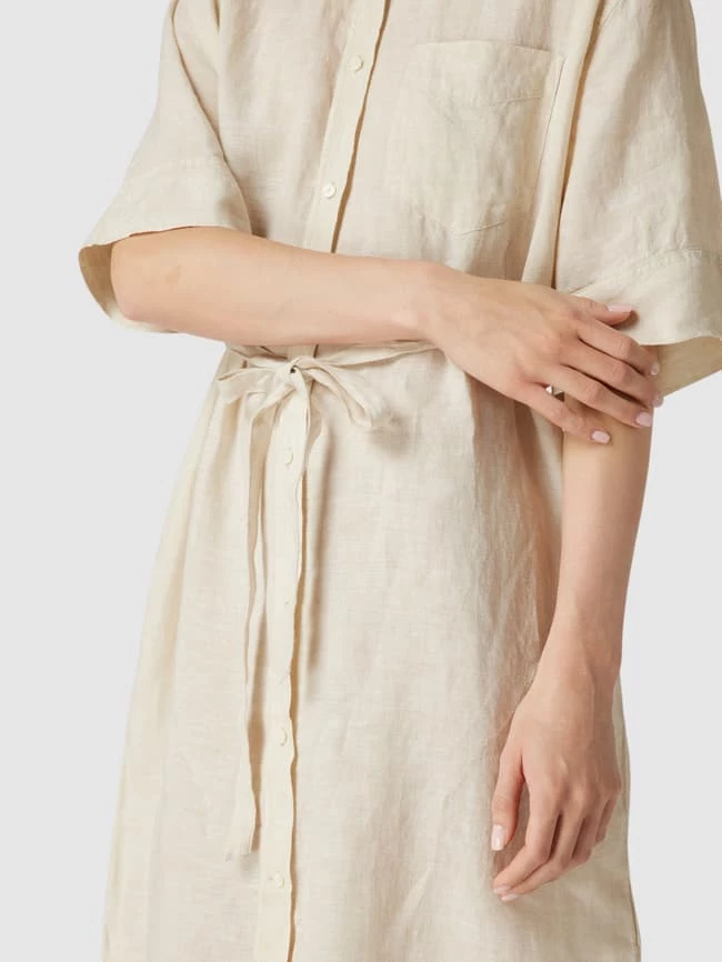 Das Hemdblusenkleid von GANT ist aus reinem Leinen gefertigt und locker geschnitten. Es kommt in Midilänge, mit durchgehender Knopfleiste, Brusttasche sowie Taillengürtel zum Binden.
