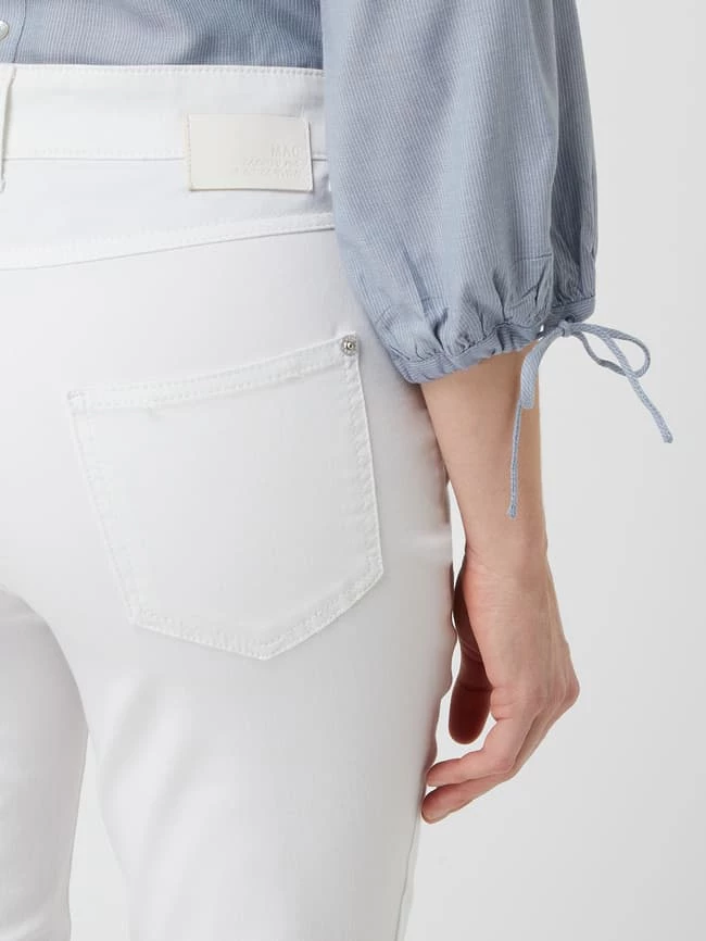 Die Jeans von MAC ist aus einer Baumwollmischung mit Stretch-Anteil gefertigt. Sie kommt im Feminine Fit mit schmalem Bein in 7/8-Länge. Warum wir diese Passform mögen? Sie unterstreicht eine schlanke Silhouette.