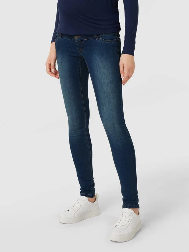 Die Umstands-Jeans von Mamalicious ist aus einem Baumwoll-Mix mit Stretch-Anteil gefertigt und im Slim Fit gehalten. Sie kommt im 5-Pocket-Design mit elastischem Bauchband und Knopfverschluss. Für eine optimale Passform eignet sich die gewohnte Konfektionsgröße.
