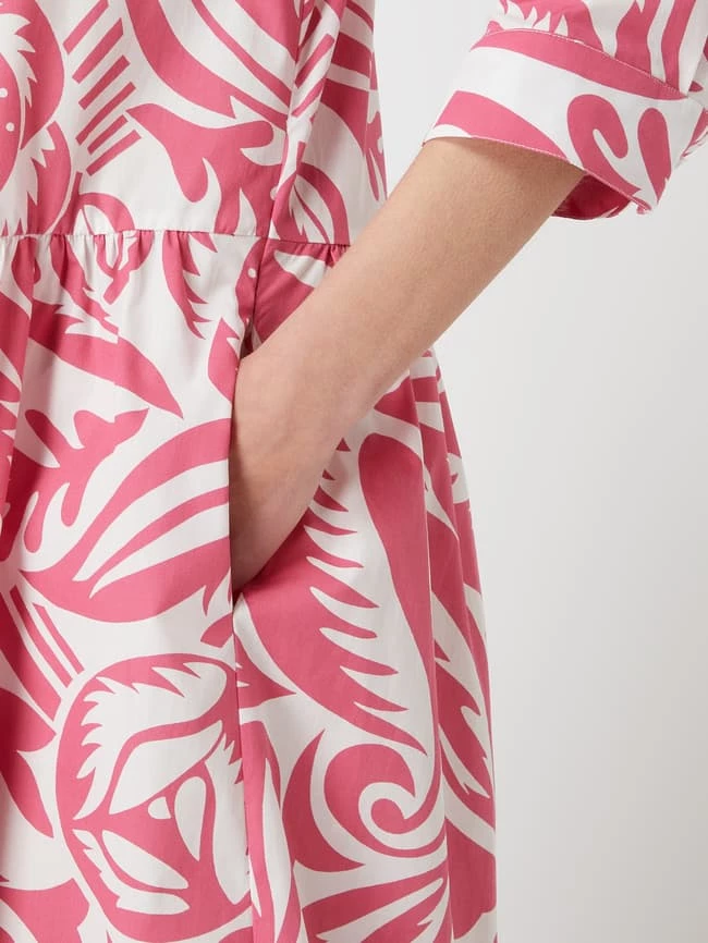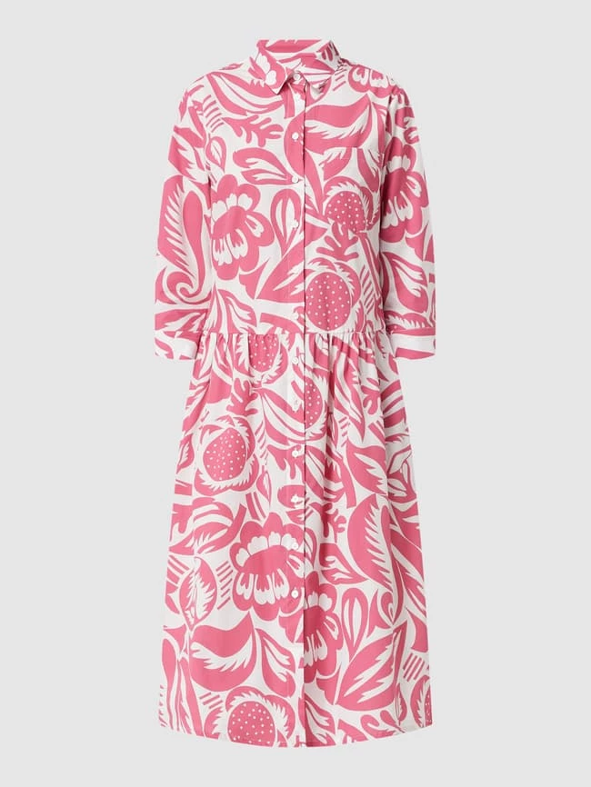 Das Blusenkleid von Nadine H ist aus reiner Baumwolle gefertigt und tailliert geschnitten. Es kommt mit floralem Muster, Knopfleiste und 3/4-Arm.