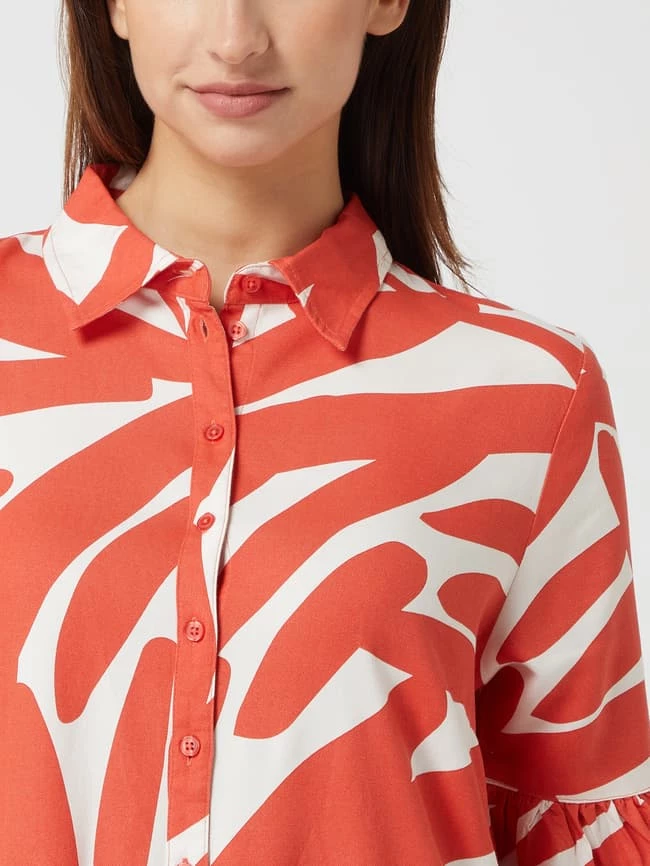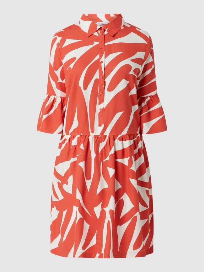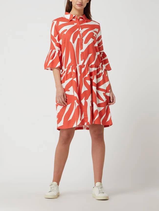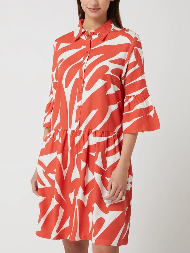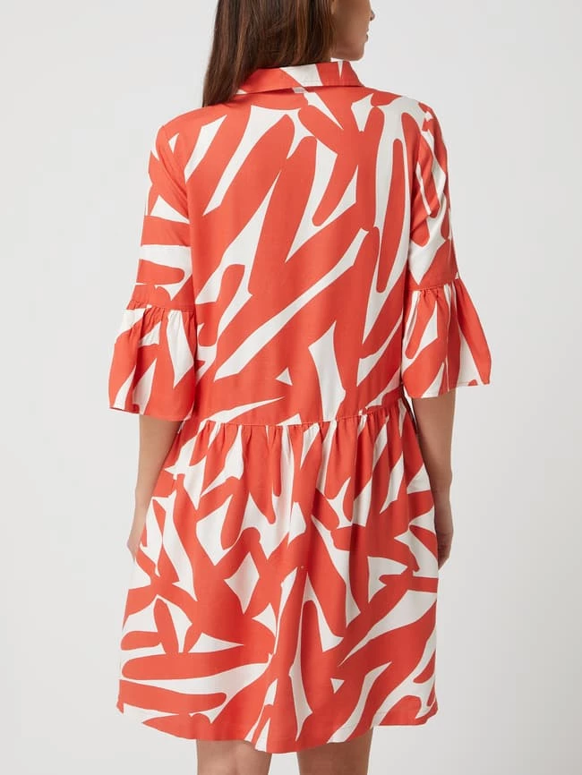 Das Kleid von re.draft ist aus reiner Viskose gefertigt und tailliert geschnitten. Es kommt mit Allover-Muster, Trompetenärmeln in 3/4-Länge und seitlichen Eingrifftaschen.