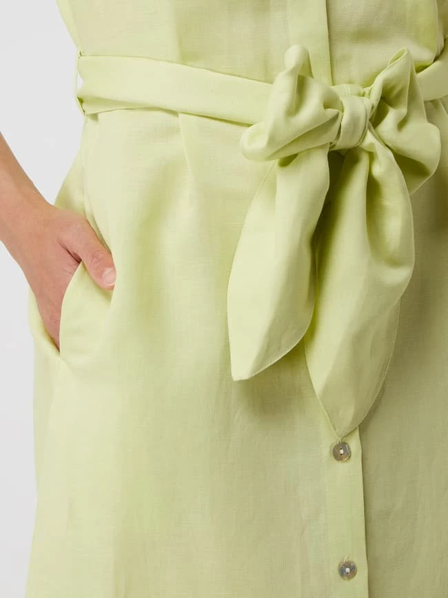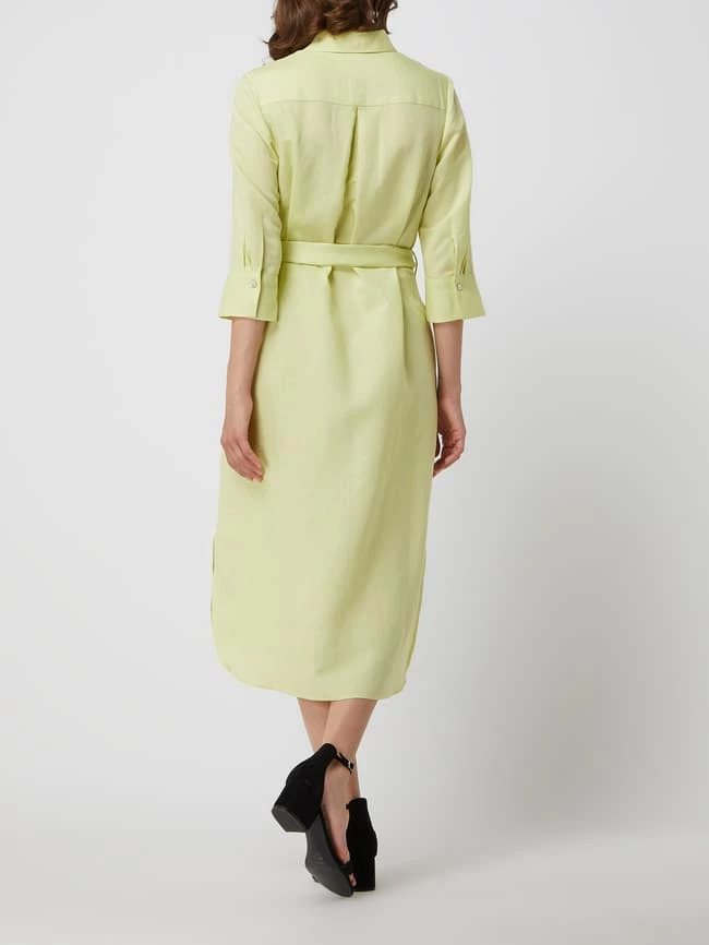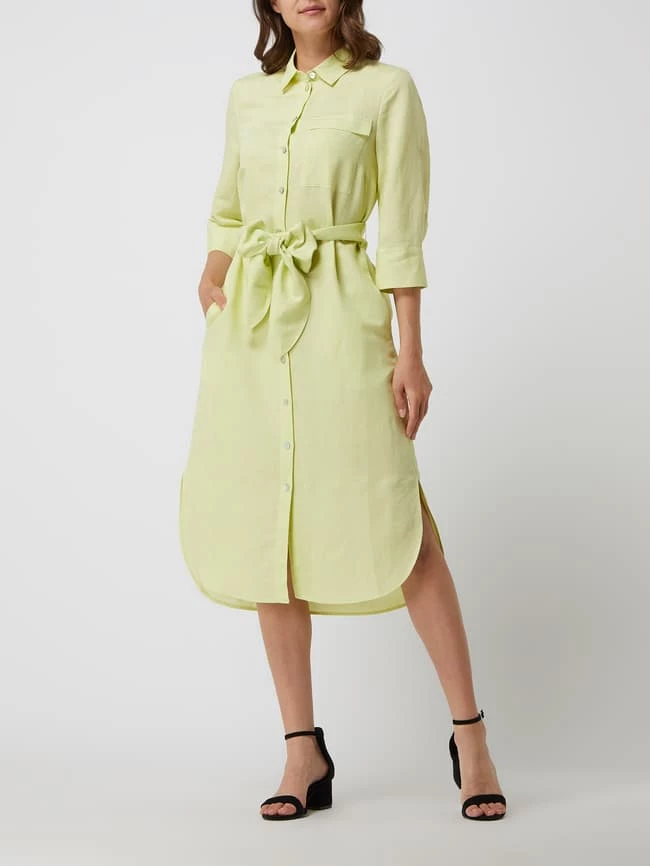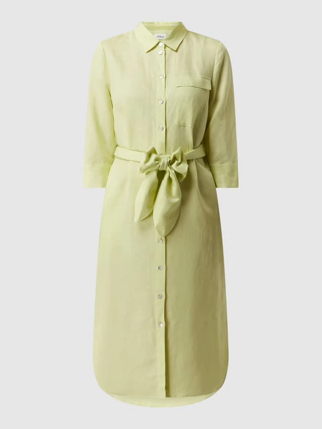 Das Blusenkleid von s.Oliver BLACK LABEL ist aus einem Leinen-Viskose-Mix gefertigt. Es zeigt sich in taillierter Passform mit Umlegekragen, 3/4-Arm und Taillenband.