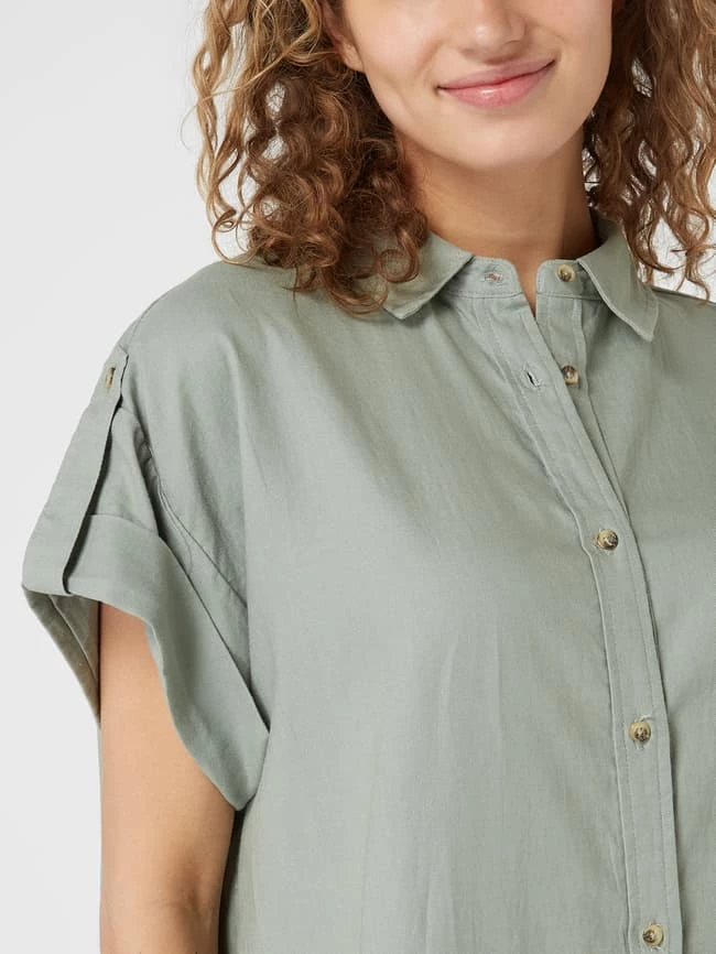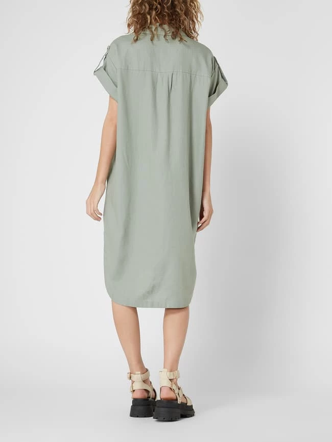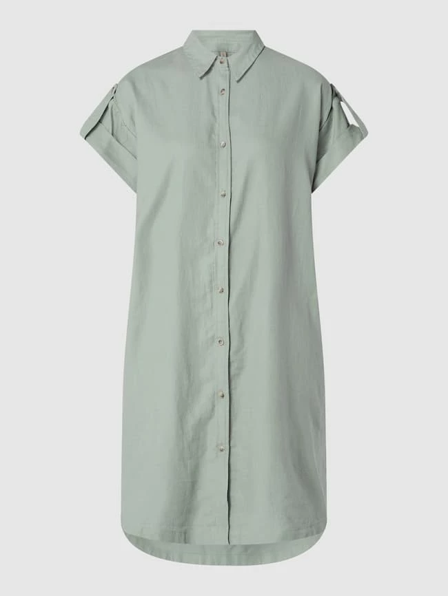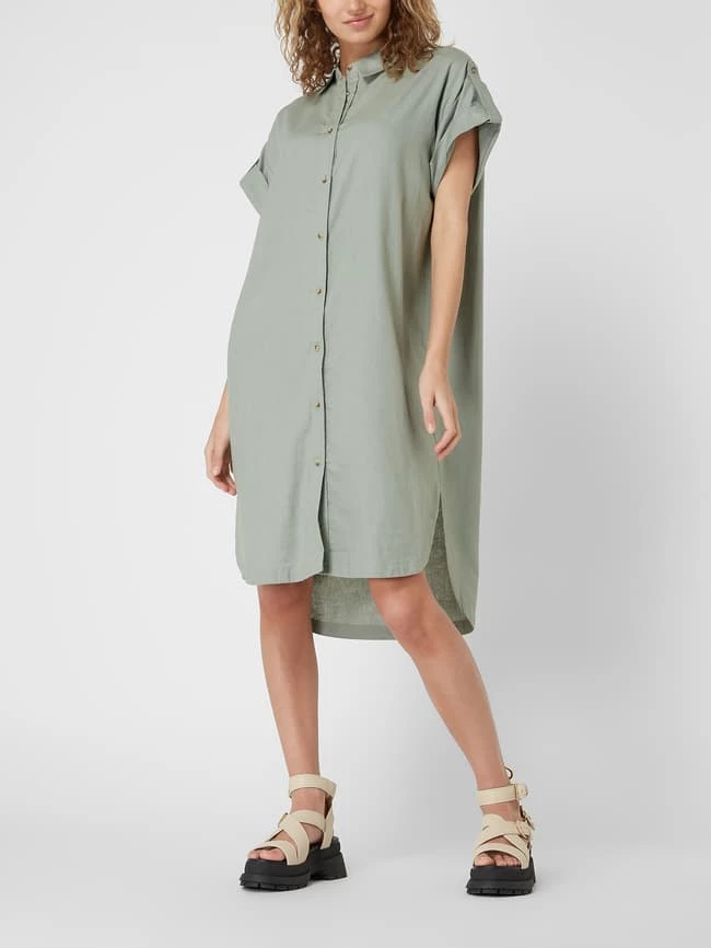 Das Hemdblusenkleid von soyaconcept ist aus einem Leinen-Viskose-Mix gefertigt. Es zeigt sich in leichter A-Linie mit überschnittenen Schultern und regulierbarer Ärmellänge.