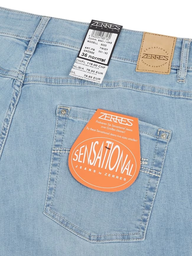 - Das Besondere an ‘Sensational Jeans’: Sie sind extrem elastisch und passen zwei Konfektionsgrößen kleiner.