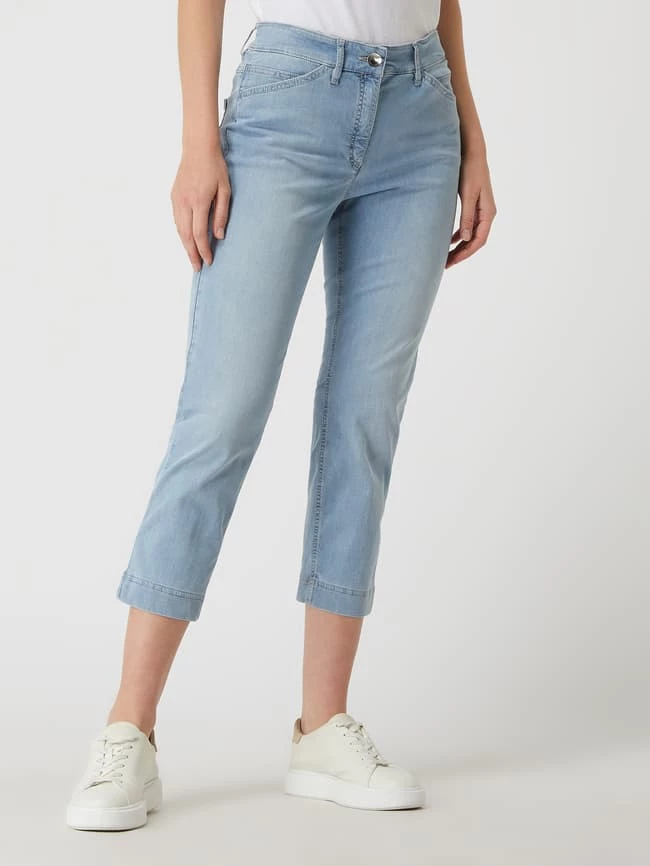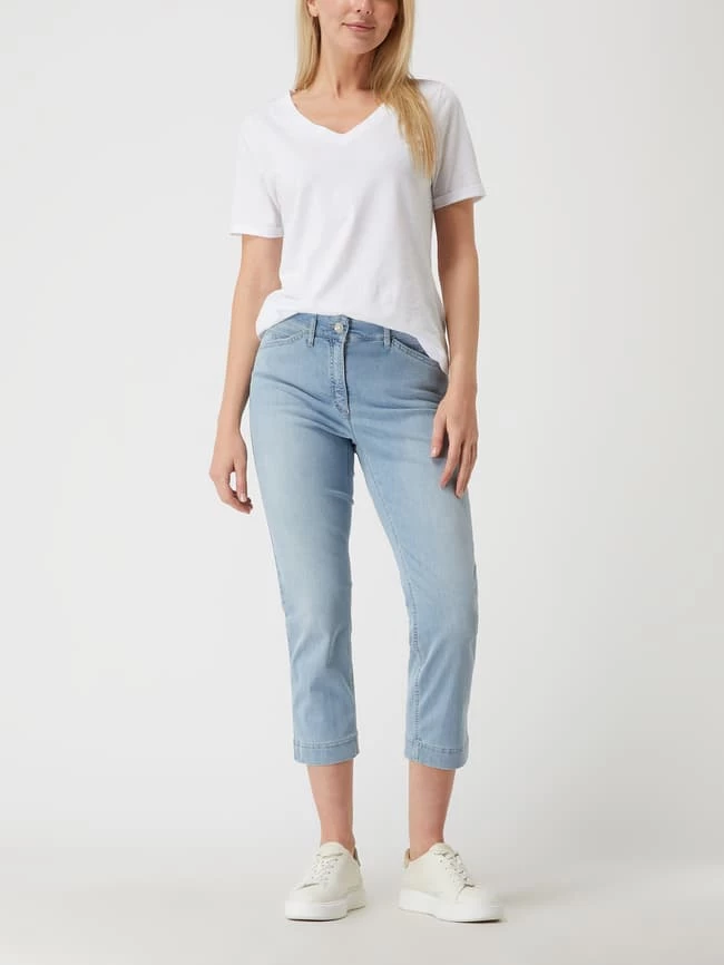 Die Jeans von ZERRES ist aus einer Baumwollmischung mit Stretch-Anteil gefertigt und verkürzt geschnitten. Sie kommt mit Eingrifftaschen, Gesäßtaschen und Label-Patch.